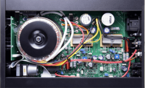 Le Rega IO utilise le même type d’amplificateur de puissance et le même étage phono que son grand frère, le Rega Brio, plusieurs fois primé par la presse internationale. Ce n’est donc pas une surprise s’il offre une qualité sonore comparable. Plus compact et plus abordable, le Rega IO adopte ainsi un circuit d’amplification de classe A/B, partageant l’ADN des autres amplificateurs de la marque britannique. Comme toujours chez Rega, le plus grand soin a été apporté à la sélection des composants. Le Rega IO adopte en effet des transistors de sortie Sanken, un potentiomètre de volume Alps et une alimentation linéaire servie par un impressionnant transformateur torique qui lui permet de délivrer 30 watts par canal sous 8 ohms.