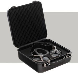 - Valise de transport en ABS haute résistance avec inserts en mousse et poignée en cuir.