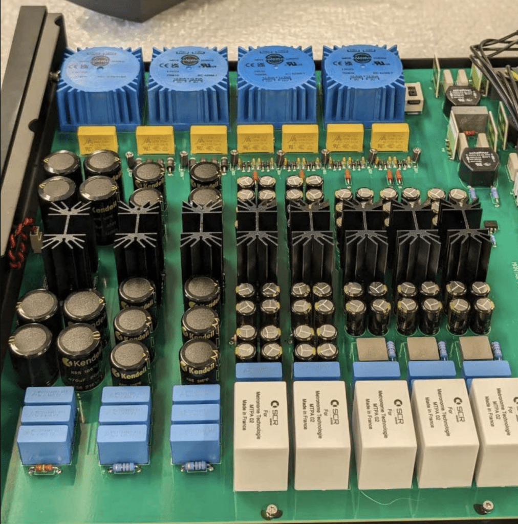 - Régulation indépendante : À l’intérieur, on trouve des banques de condensateurs (parfois jusqu’à 300 000 µF sur les plus gros modèles, soit plus que certains amplificateurs de puissance) et des dizaines de lignes de régulation de tension indépendantes. Cela assure un courant avec une grande stabilité, indispensable pour la profondeur de la scène sonore.